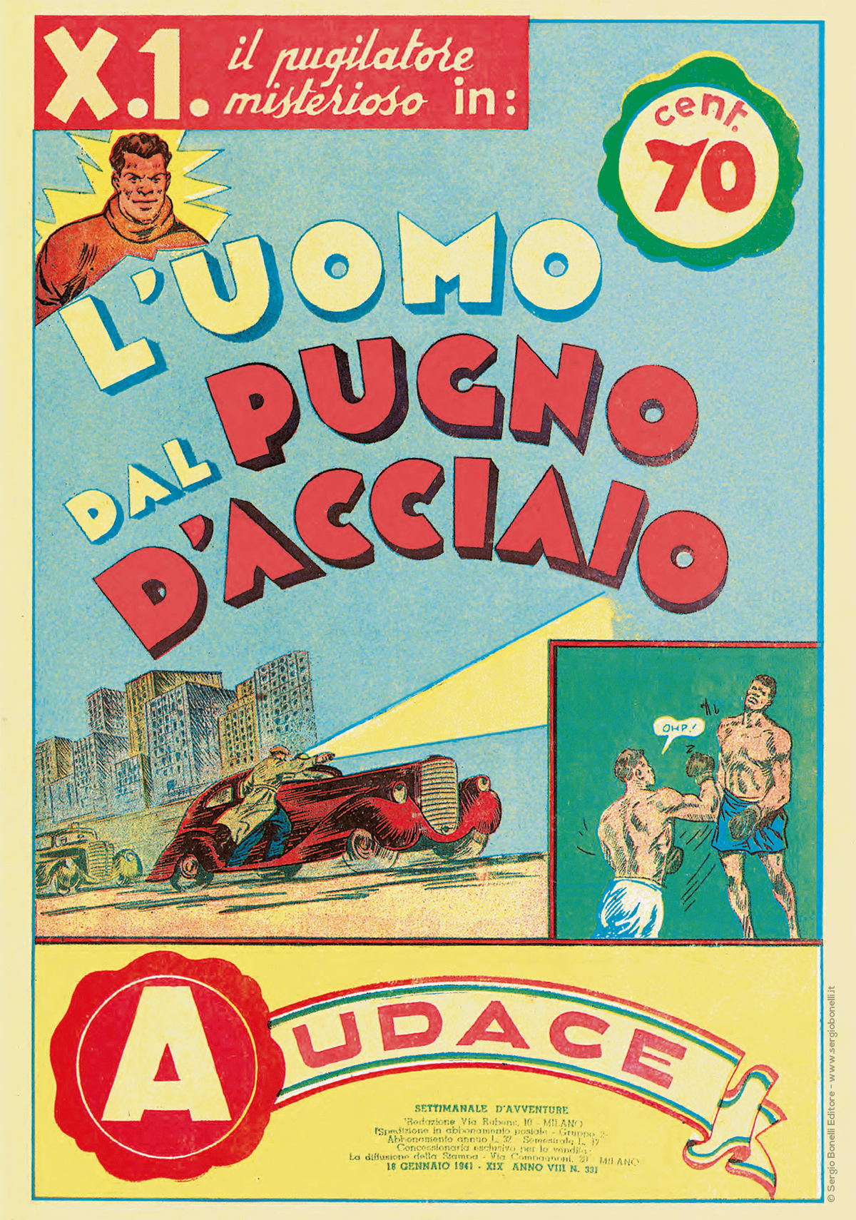 L’anno che si è appena aperto ci permetterà di festeggiare numerosi, importanti traguardi. Il primo lo celebriamo proprio oggi con gli ottant’anni della fondazione della Casa editrice. Era infatti il 18 gennaio 1941 la data sulla copertina del numero 331 di Audace, il primo pubblicato dalla nuova società di proprietà di Gianluigi Bonelli.