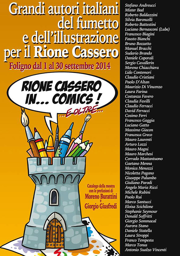 “Rione Cassero… in comics!”, si terrà dal 1 al 30 settembre, nel chiostro del Nobile Palazzo Gentili-Spinola, a Foligno nella “rionale” Via Mazzini.