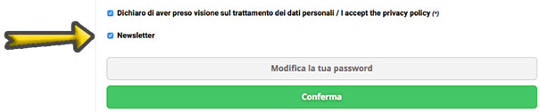 Scegliendo Modifica dati, passerete alla completa gestione del vostro profilo. Avendo inserito in precedenza i vostri dati e un indirizzo email di riferimento, non vi resterà che scorrere la pagina più in basso, fino a trovare la casella di attivazione della newsletter.