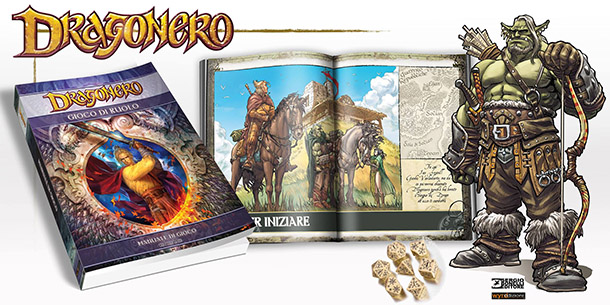 Quale serie meglio di Dragonero poteva prestarsi per questa operazione?… Per spiegare agli appassionati cosa si troveranno di fronte acquistando Dragonero GDR – splendidamente racchiuso da una confezione illustrata da Paolo Barbieri e arricchito dai tanti disegni inediti che accompagnano le pagine del suo manuale –, lasciamo spazio alla descrizione del gioco proposta dalla stessa Wyrd Edizioni.