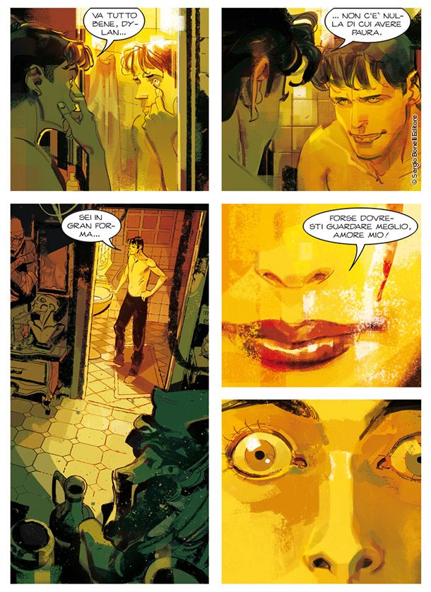 Sto lavorando alla nuova serie di Tiziano Sclavi, Dylan Dog – I racconti di domani. È stato bello tornare a fare pagine a fumetti, ma devo dire che, dopo tante copertine di fila, mi sono accorto che non è così facile tornare alla “modalità fumettista”: raccontare con una sola immagine e raccontare in sequenza sono due processi molto diversi!