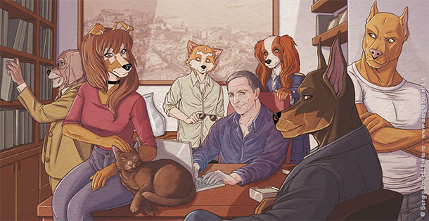 In realtà è stato facilissimo, perché l’idea è venuta in maniera spontanea alla disegnatrice Fabiana Fiengo, che aveva realizzato un disegno nel quale rappresentava in versione zoomorfa i Bastardi di Pizzofalcone con volti di cani. Lo aveva realizzato semplicemente per gioco, come una piccola scommessa. Quell’immagine è piaciuta talmente tanto che ci ha fatto illuminare la classica lampadina dell’idea particolare che ha poi portato alla chiave con cui adattare il mondo delle storie immaginate da Maurizio de Giovanni.