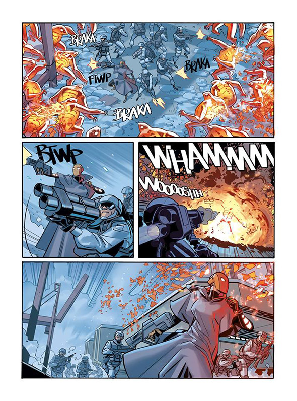 Come anticipato nella nostra intervista a Emiliano Mammucari, coautore e creatore grafico della serie, il team di Orfani ha posto in fase di progettazione una particolare attenzione all’aspetto cromatico delle tavole, considerando il colore non come un aspetto accessorio bensì come parte integrante della narrazione.