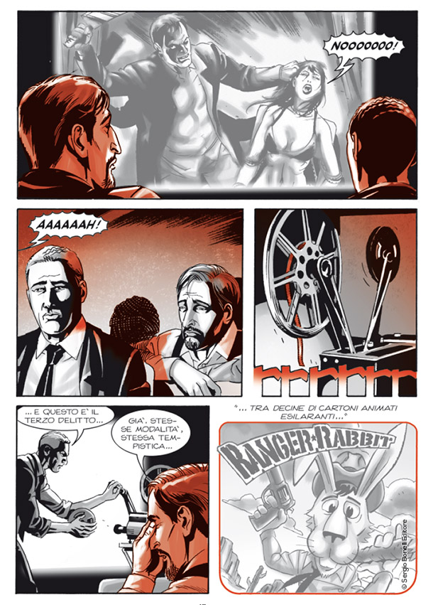 Cambia moltissimo. Quando disegno gli storyboard, la parola d’ordine è la velocità e poi la narrazione per immagini. La tecnica che uso per disegnare o lo stile sono meno importanti, dal momento che i disegni non verranno stampati. In pratica, l’importante è che quei disegni li capisca il regista, per cui si lavora spesso a blocchi di scene e con una tecnica di disegno molto schizzata. Nell’affrontare una storia di Brendon o di Morgan Lost, invece si ragiona per tavola. Nel fumetto, oltre alla narrazione, ci sono molti altri aspetti cui prestare attenzione, ad esempio i lettori, la stampa, la serialità. Questi aspetti necessitano un disegno a china, più curato e leggibile da tutti. La fedeltà alle atmosfere e ai personaggi deve essere massima. In “I coniugi Rabbit” c’è una tavola con vista panoramica di una strada di New Heliopolis, dove si svolge una rassegna cinematografica horror. Il tempo che ho impiegato per disegnare quelle due vignette, nel lavoro per il cinema lo avrei utilizzato per fare una trentina di fotogrammi!