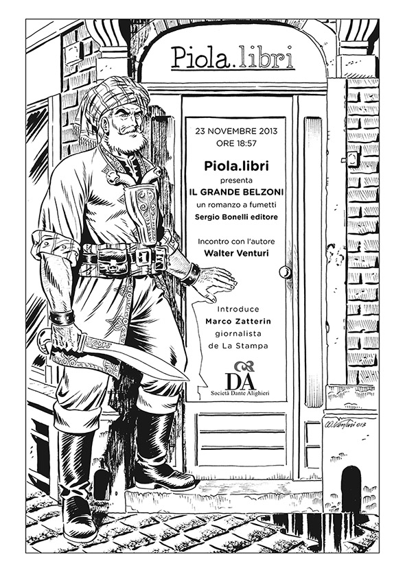 La presentazione de “Il Grande Belzoni” – organizzata in collaborazione con la Società Dante Alighieri –, sarà introdotta da Marco Zatterin, giornalista de La Stampa, e si terrà sabato 23 novembre, a partire dalle 18:07, presso la libreria Piola.libri, in rue Franklin 66, a Bruxelles.
