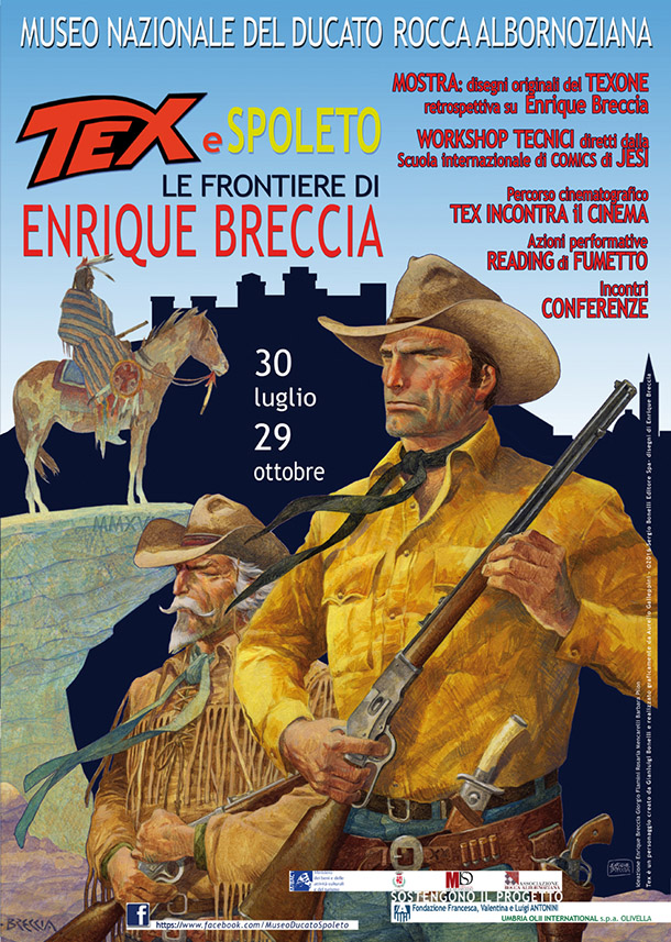 La mostra “Tex e Spoleto: le frontiere di Enrique Breccia” sarà visitabile da sabato 30 luglio presso il Museo nazionale del Ducato di Spoleto, Rocca Albornoziana, sala Biblioteca (a Spoleto).