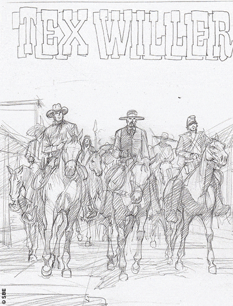E come sempre, la copertina di questa quarantunesima uscita è firmata da Maurizio Dotti. Vi presentiamo il suo lavoro attraverso il work-in-progress della gallery a fondo pagina e della gif animata che trovate subito qui sotto, che evidenziano le varie fasi di sviluppo dell’idea fino a vederla finalmente stampata sull’albo.