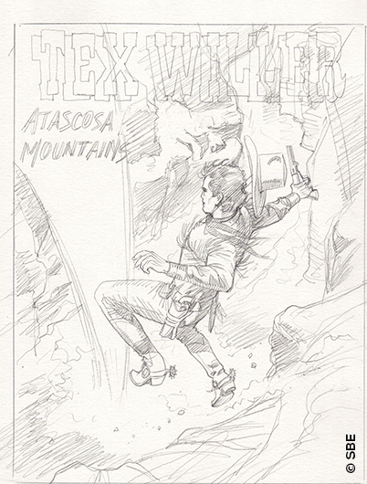 Questo è l’intreccio immaginato da Jacopo Rauch per “Atascosa Mountains“, il numero 34 di Tex Willer, in edicola a partire da venerdì 20 agosto e disponibile invece in fumetteria e nel nostro sito dal 18 settembre. I disegni dell’albo sono di Roberto De Angelis, mentre quello di copertina è naturalmente di Maurizio Dotti. Il disegnatore limbiatese ci ha mandato alcuni degli studi che ha realizzato per arrivare al risultato finale, e noi non potevamo certo esimerci dal proporveli!