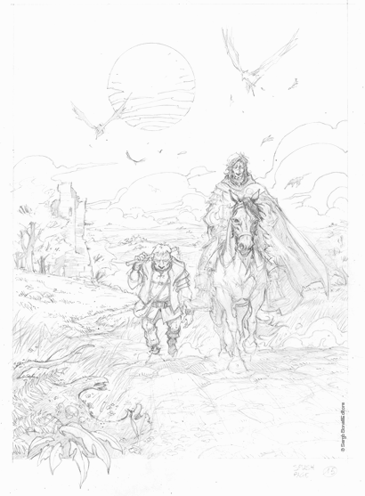 Da questa versione, lo sceneggiatore Fabrizio Accatino ha tratto lo spunto per confezionare, con la medesima sagace ironia che riversò nel Western di “Il prezzo dell’onore” (Le Storie n.31 e recentemente pubblicato anche in volume cartonato), un’avventura medievale decisamente “fuori dal coro”. A disegnarla abbiamo chiamato Tommaso Bianchi, il quale aveva già dato prova del proprio talento confrontandosi felicemente con gli scenari fantasy-storici dell’Iliade omerica (“Il sangue dei mortali”, Le Storie n. 58), e che, soprattutto, ci ha confidato di nutrire una vera e propria passione per draghi & affini.