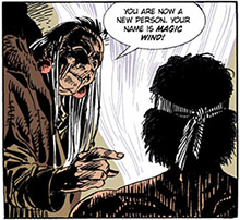 L’edizione americana della Epicenter Comics di San Diego non è esattamente la stessa delle ristampe Panini, perché il colore qua e là è stato revisionato (molto bene), la carta è lucida e ha una resa fantastica, la veste grafica è davvero d’impatto (nella gallery a inizio articolo potete ammirarne la cover del primo numero ridisegnata da Bane Kerac e quattro pagine). Insomma è proprio un’edizione di lusso, altrimenti “Magic Wind” non costerebbe 12,90 Dollari. Chi fosse interessato, la può trovare anche su Amazon. Mi ha naturalmente fatto molto piacere che la serie uscisse negli Stati Uniti, con distribuzione Diamond, dunque su tutto il territorio nazionale, perché è la prima volta che accade per una serie western italiana. Prima di decidere se uscire, siccome in America sono molto seri, hanno sondato le fumetterie. È piaciuta, al punto che mentre in origine si pensava di spacchettare gli episodi a blocchi di 30 pagine circa, per riformattarli all’americana, poi si è deciso di uscire con il format originale. So benissimo che i fumetti in America non vendono moltissimo, però già essere presenti è una bella soddisfazione. Non ho la minima idea di come possano reagire i lettori americani. Qualche anno fa, quando era appena uscito il n.100 a colori di Magico Vento, conobbi, a Belo Horizonte, un famoso fumettista di New York e gli passai l’albo. Lui lo sfogliò e di fronte a una scena in cui uno squadrone di giacche blu semina una strage in un villaggio Sioux, mi disse: “Ma sai che queste cose sono successe davvero?”. Ecco: non si può mai sapere cosa ne pensano gli americani. Una volta uno mi ha chiesto pure: “Ma in Italia, voi ce l’avete la pizza?”…