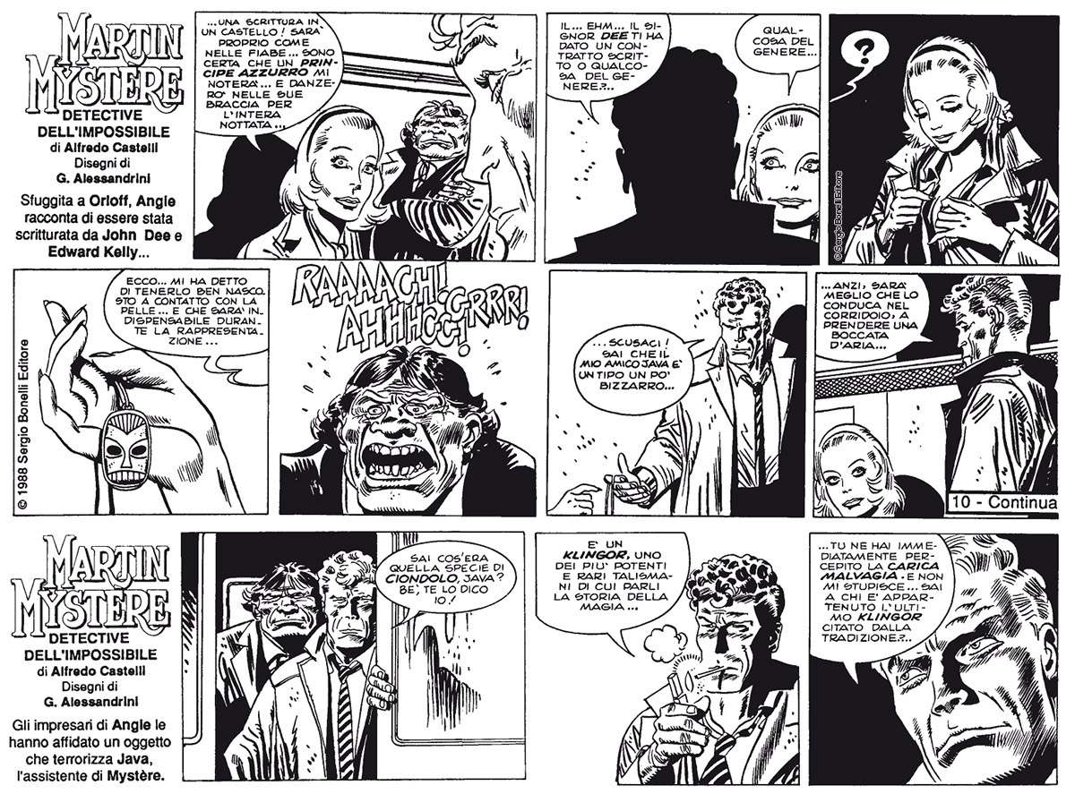 ![]() Una striscia di “Il tesoro del loch”. Testi di Alfredo Castelli, disegni di Giancarlo Alessandrini. |