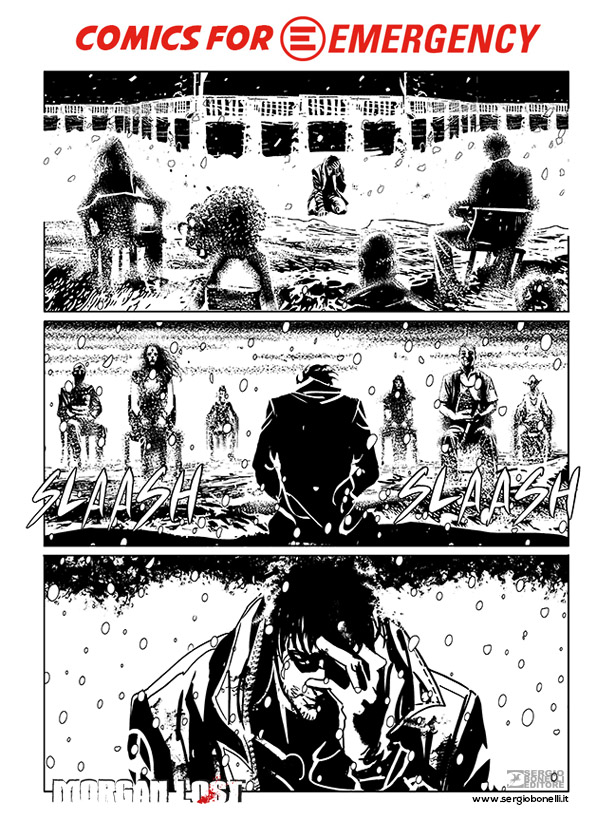 Il nostro autore ha realizzato una tavola – che potete vedere in questa pagina –, stampata in soli 50 esemplari numerati, che sarà possibile assicurasi con un’offerta libera. I fondi raccolti dall’iniziativa saranno impiegati da Emergency per il mantenimento del Centro di Maternità di Anabah, in Afghanistan.