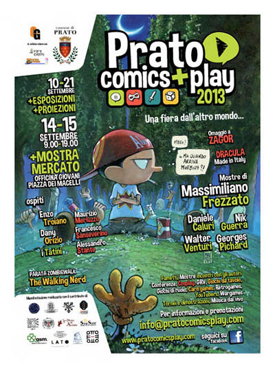 Per maggiori informazioni riguardo Prato Comics + Play 2013 – di cui vedete la locandina qui sotto – vi rimandiamo alla pagina facebook ufficiale della manifestazione it-it.facebook.com/Prato-Comics-Play