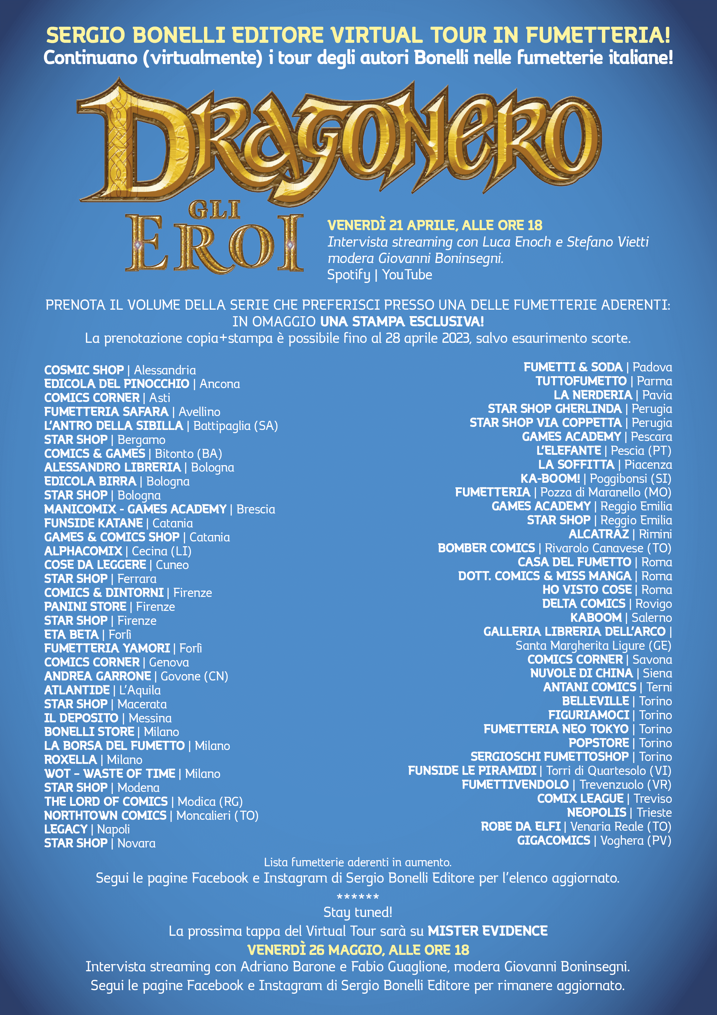 Naturalmente, in Preview #90 trovare anche tutti gli altri albi da edicola che sono disponibili anche in fumetteria, nonché la lista dei negozi che aderiscono al nostro Virtual Tour Fumetterie per la tappa dedicata a Dragonero Gli Eroi, che prevede la pubblicazione di un’intervista con Luca Enoch e Stefano Vietti nel nostro canale Podcast e su YouTube alle ore 18:00 di venerdì 21 aprile.