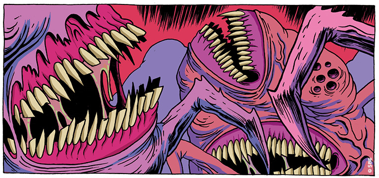 Nel 2017 ho cominciato a collaborare con la Hollow Press, specializzata in fumetti weird e horror dal taglio fantasy e underground, per cui ho realizzato “The Rust Kingdom”, un fantasy postapocalittico a metà strada tra Mad Max e Adventure Time, seguito da due brevi spinoff, e “FINGERLESS”, un graphic novel muto che racconta una implacabile invasione aliena dai risvolti decisamente orrorifici e stranianti.