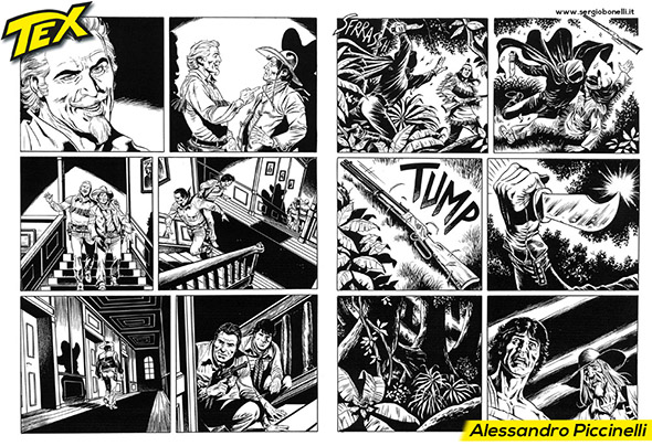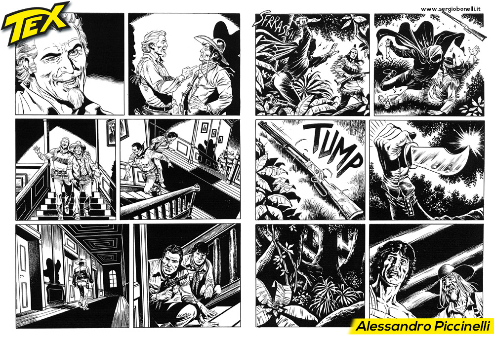 Il mistero per forza di cose deve restare misterioso! Anzi, direi che la parte migliore di questo tipo di storie è l’atmosfera iniziale, quando la minaccia è ancora avvolta nel buio della notte e i suoi contorni sono indefiniti e oscuri e pertanto più minacciosi. Vi posso dire che, in onore degli antenati di Eusebio, ci sarà un po’ di mitologia maya e poi qualche spunto vagamente lovecraftiano e una magione misteriosa degna di un classico di Mandrake, “Il Mostro di Passo Tanov”, o dei vecchi film Horror della Universal, quelli che piacevano tanto a Sergio Bonelli. Però il tutto è, spero, cucinato nello stile Tex, con abbondanti dosi di piombo caldo e polvere da sparo.
