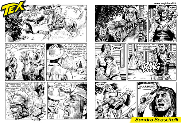 Sì, proprio all’insegna dell’ampia scelta di stili offerti, a breve esce in edicola qualcosa di più agile e colorato. Il Color Tex numero 6, il secondo volume contenente storie brevi, si chiama “Stelle di latta e altre storie” e propone quattro avventure scritte nell’ordine da Michele Medda, Moreno Burattini, dal sottoscritto e da Roberto Recchioni, disegnate da Michele Benevento, Giuseppe Camuncoli, Luca Rossi e Andrea Accardi. Vi do appuntamento alla mia presentazione di questo albo, che a breve apparirà sul sito, per spiegarvi la scelta di questi autori. Aggiungo che, secondo me, questo albo è migliore del precedente e che questa serie ci permette di sperimentare nuovi disegnatori e nuovi sceneggiatori che offrono sguardi diversi sul mondo del nostro ranger.