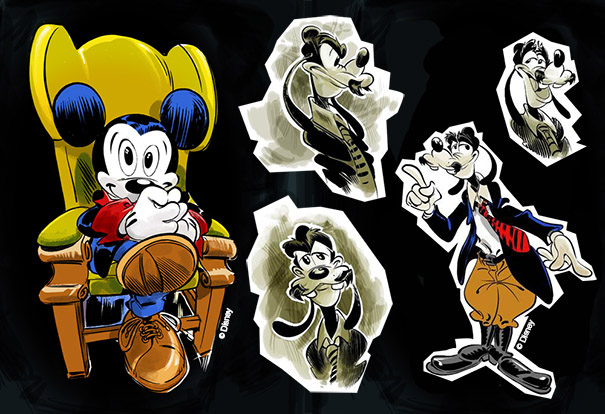 L’avventura, nata da un’idea di Roberto Recchioni e Tito Faraci, nella migliore tradizione delle parodie disneyane, proporrà una versione “topolinesca” di Dylan Dog e più che brividi di paura sarà pensata per scatenare qualche risata. In occasione del Salone del Fumetto di Cartoomics (che si terrà a Milano nel mese di marzo), Panini Comics/Disney proporrà anche una versione variant dell’albo, che presenterà un’esclusiva cover dedicata a Dylan Top. Qui di seguito, vi mostriamo due immagini (in versione non definitiva), firmate dal disegnatore Paolo Mottura.