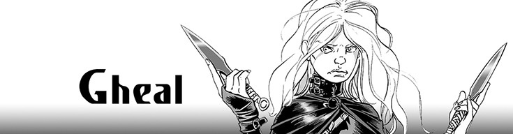 Abilissima giocoliera di un circo itinerante, Gheal riesce a piazzare i propri pugnali esattamente dove desidera che colpiscano; inoltre è agile come un gatto ed è in grado di compiere ardite evoluzioni acrobatiche. Insomma, una ragazza come lei è una preziosa risorsa per i ribelli e infatti, Ian e Gmor la accettano volentieri nei propri ranghi, senza troppo badare alle superstizioni che riguardano il suo aspetto da albina.
