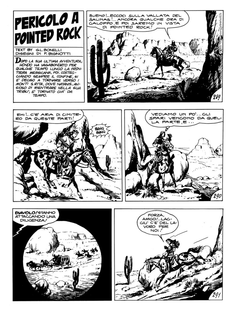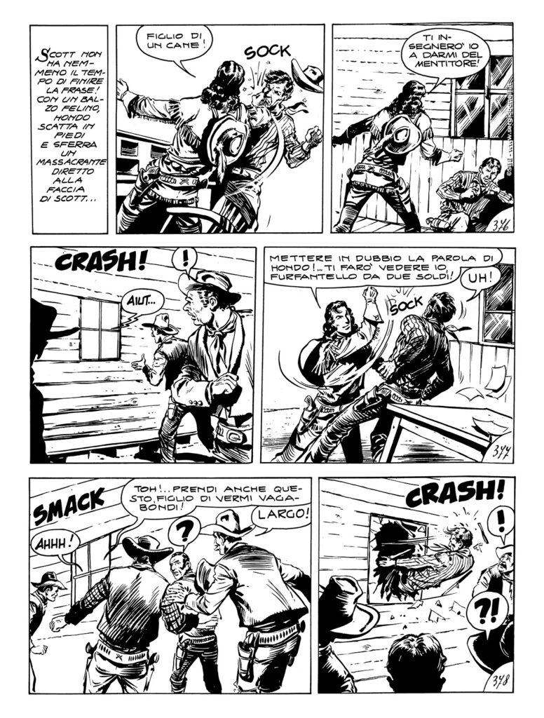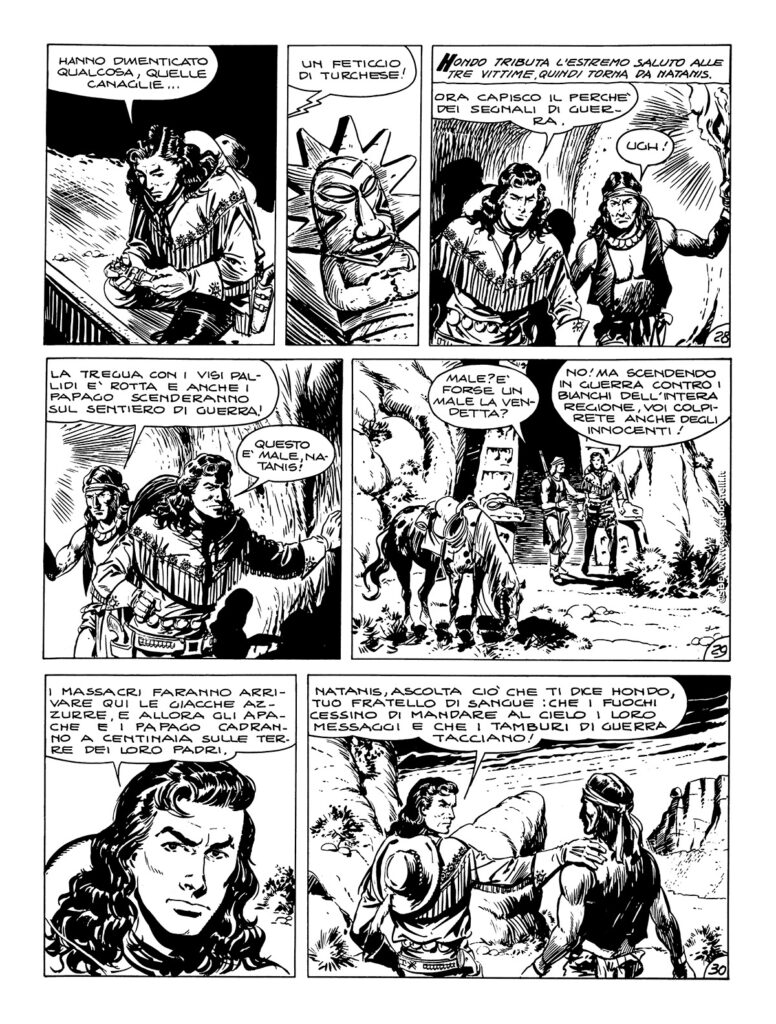 Continua lo shoppingIn addition to the hugely successful Tex Willer, writer Gianluigi Bonelli created many other characters under the banner of Adventure. This time, we bring you the first exploits of Hondo, the white man raised by the Apaches, first introduced in 1956 with artwork by Franco Bignotti. Alongside his blood brother Natanis, the renegade scout Hondo follows the path of vengeance: five faceless men have massacred Natanis' family and plundered the Apache gold… But one by one, the guilty will receive the death fetish!