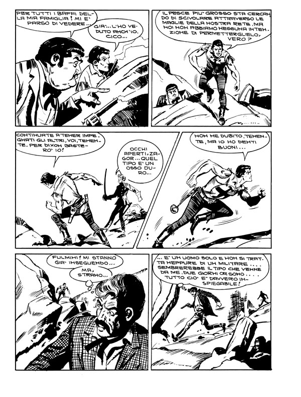 In this issue: The cover story ends on page 57. The story entitled “The Marauders of the Mountain” (by G. Nolitta, G. Ferri and M. Cubbino) begins on the same page and ends on page 114, while the story entitled “A Nest of Vipers” (by G. Nolitta and G. Ferri) begins on page 115 and ends in the following issue:
