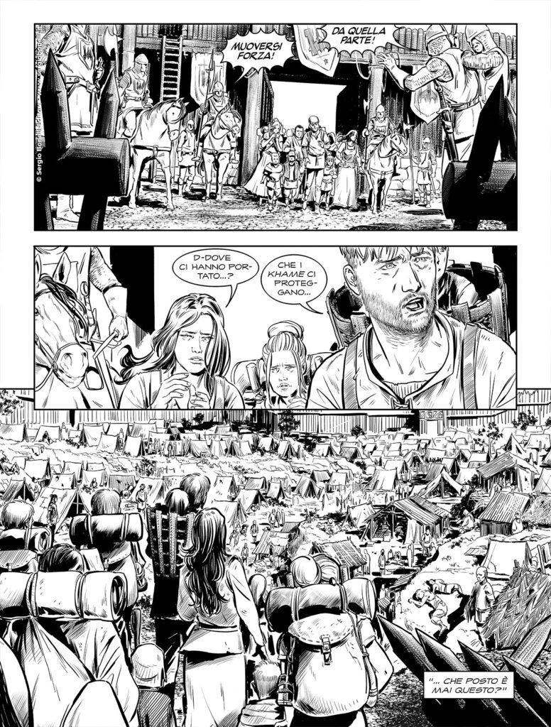 Continua lo shoppingThe coastal regions are safe from the Abominions' invasion, as saltwater is harmful to them. As a result, large numbers of refugees flock to these areas, creating issues of public order. The flow must be managed, temporary camps organized, and the refugees redistributed elsewhere. As always, some communities are willing to do their part, while others refuse outright. The wealthy city of Vetwadàrt is one of the latter... but its refusal to assist the refugees hides a mystery and a treacherous danger that Dragonero, supported by the Gazze Ladre, must confront!