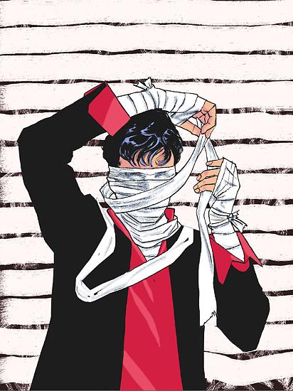 L'idea delle bende e, con esse, l'idea di una nuova identità e una nuova vita, nascono da alcuni elementi presenti nella storia stessa che ben si sposavano con le esigenze di comunicazione che i due autori volevano imprimerle.