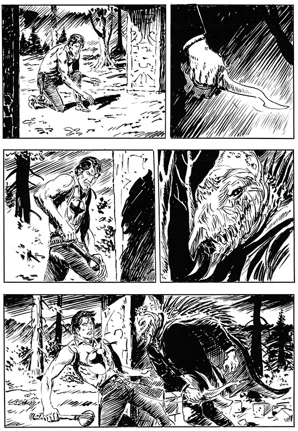 Ritornando sulla serie gli scenari del Nord America, il testimone passerà a un disegnatore chiamato a confermarsi (se non superarsi) con la sua seconda prova: Joevito Nuccio, alle prese con un episodio che porta anche la firma di Burattini. Questa volta, Nuccio non dovrà cimentarsi con altri licantropi (come accadeva in "Plenilunio"), ma ugualmente si troverà alle prese con fauci dai denti aguzzi, quelle di animali realmente esistenti su cui l’autore si è dovuto documentare a lungo...
