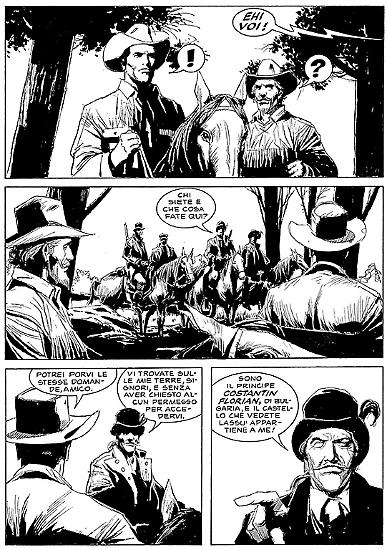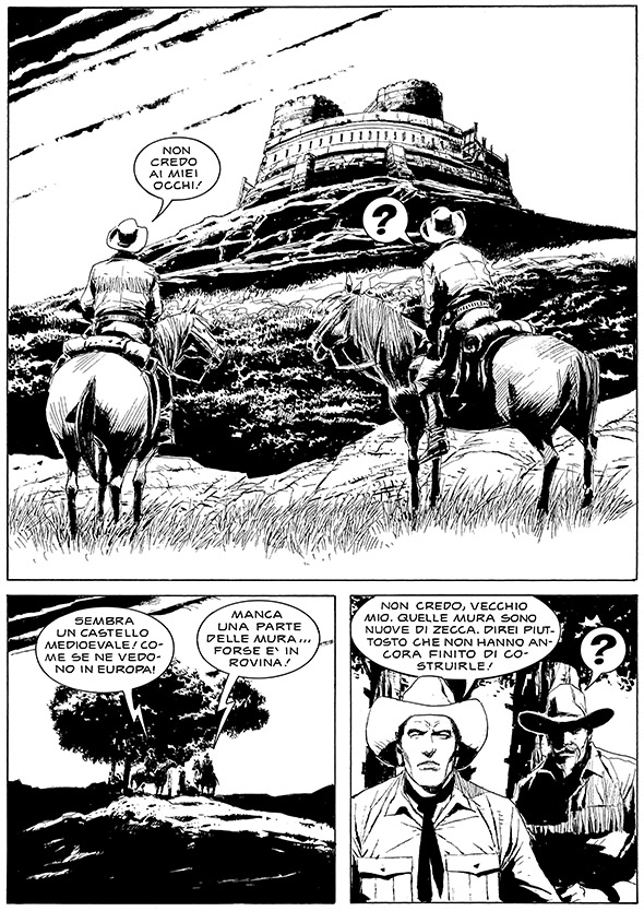 ► I castelli, nel West texiano, non sono una novità. Basti pensare a quelli apparsi nei classici firmati da G.L. Bonelli e Galep come "La città d'oro" (pubblicato nel numero 43 della collana mensile) o "Il grande re" (numero 53). Ti sei in qualche modo rifatto a questa tradizione pensando alla fortezza del principe Costantin Florian, per la tua avventura? Il nobile venuto dalla lontana Europa dell'Est, ci ha portato subito a pensare di trovarci di fronte a una storia vampiresca: è così?