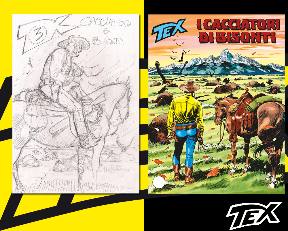![]() I vari passaggi della creazione della copertina di Tex n.646, in edicola ad Agosto. (cliccate sull'immagine per visualizzarli ingranditi)  |