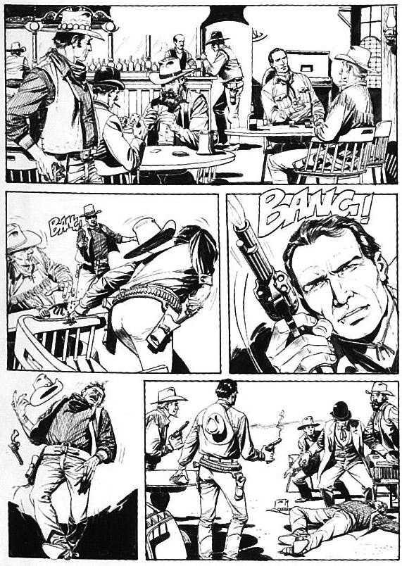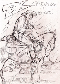 La sofferenza è stata nel tirar fuori un'immagine da un tema non avventuroso, ma più intimista, "osando" dare uno spessore diverso alla semplice e pura avventura di Tex. Ho fatto cinque schizzi perché, soprattutto se non è una scena d'azione classica, a parità di situazione, una scena la si può raccontare in molti modi.