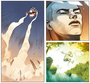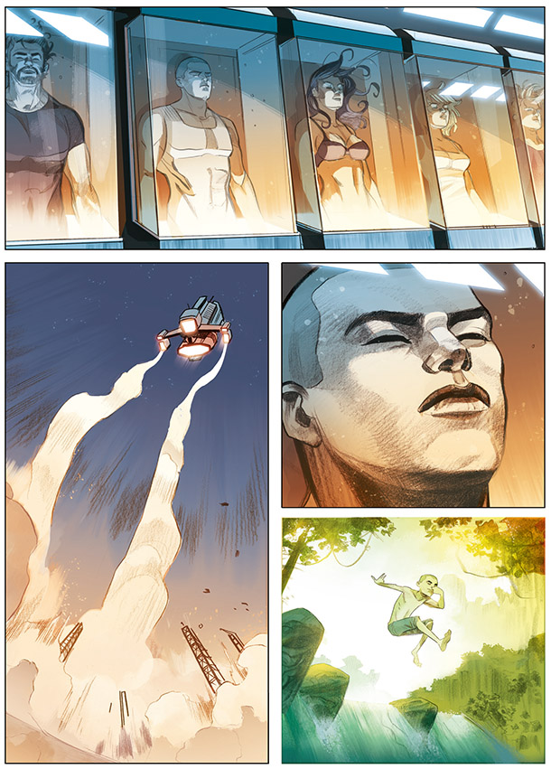 ![]() "Roberto e io avevamo elaborato sequenze con più variazioni di stile per chiudere tutte le 'anime' della serie [...]". (cliccate sull'immagine per visualizzare la tavola intera) |