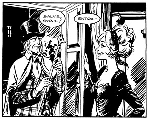 ![]() La prima apparizione di Mortimer e della sua compagna Sybil Kant. Vignetta tratta da Zagor n.395 "Il diabolico Mortimer". |