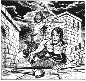 Dopo aver visto l'immagine che campeggiava su "La scure e la sciabola", scattò in me un'irrefrenabile voglia di disegnare che prima non sentivo affatto. Nell’ultima parte della storia mi sono ritrovato una pagina di sceneggiatura in cui Moreno mi chiedeva di riprodurre proprio il disegno di quella copertina, sia perché era perfetta per la sequenza che stavamo realizzando, ma anche per omaggiare il Maestro Ferri. Sono stato felicissimo di poter inserire questo tributo tra le pagine della storia che verrà pubblicata esattamente quaranta anni dopo l'uscita in edicola di quell'albo per me così importante.