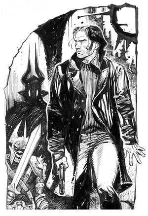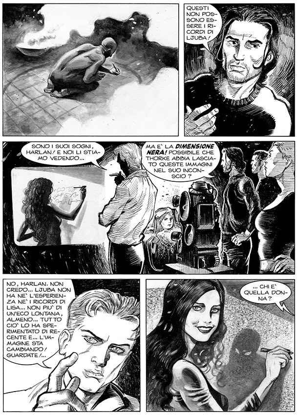 Tanti anni fa avevo già fatto delle prove per disegnare il personaggio di Boselli e Colombo. Mi sembra di ricordare che non fossero andate male... Avrei dovuto aggiustare la faccia di Harlan, che io vedevo vampiresca, e invece la volevano bella. Ma dei ricordi non ti devi fidare. Mettono cerotti ovunque, e tu pensi che le cose siano andate meglio di quanto credi. Rimane la questione che non ero abbastanza maturo per un lavoro simile. Ero troppo estemporaneo.