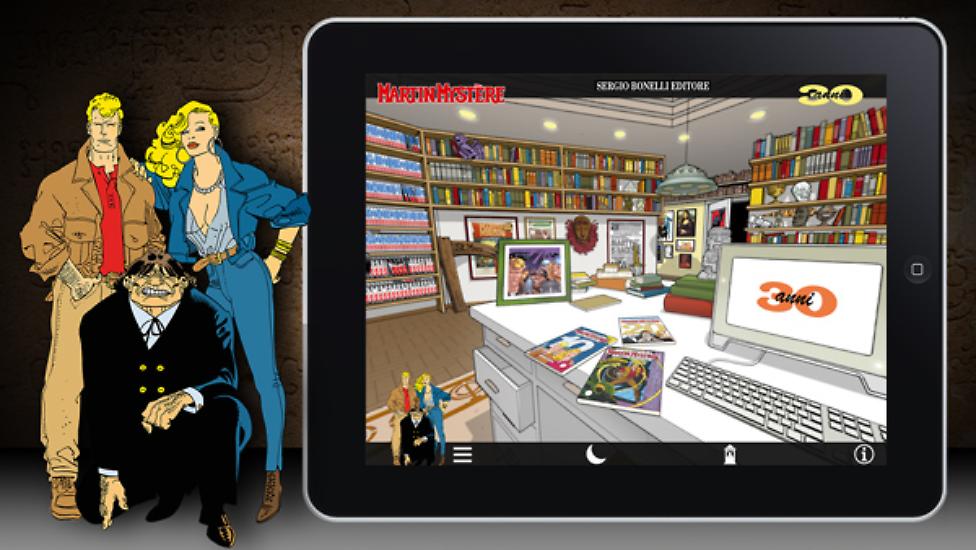 Per festeggiare i trent'anni di Martin Mystère, sono approdate sull'App Store di Apple due applicazioni gratuite dedicate al Detective dell'Impossibile (le presenta entrambe Alfredo Castelli nel video che potete trovare in questa pagina). La prima delle due, semplicemente intitolata "Martin Mystère" vi porta nello studio del Buon Vecchio Zio Marty, ricostruito tridimensionalmente. Un ambiente tutto da esplorare, alla ricerca dei tanti contenuti offerti dall'applicazione: immagini, filmati, dossier, la mostra "I cent'anni di Martin Mystère", una gallery di tutti gli albi a fumetti del BVZM apparsi in edicola negli ultimi trent'anni e molto altro ancora. Nei prossimi giorni, attraverso l'app o direttamente sull'iBook store, potrete anche scaricare e leggere, sempre gratuitamente, quattro albi completi a fumetti. Si tratta di una versione digitale del primo numero (giunto in edicola nell'ormai lontano 1982), dell'albo del decennale e di quello del ventennale, con tanto di "Index" realizzato all'epoca e che ripercorreva i primi due decenni di vita del personagggio. Prossimamente, la App si arricchirà di ulteriori contenuti. Tenete d'occhio le nostre Flash News per scoprire quando avverrà questo aggiornamento!