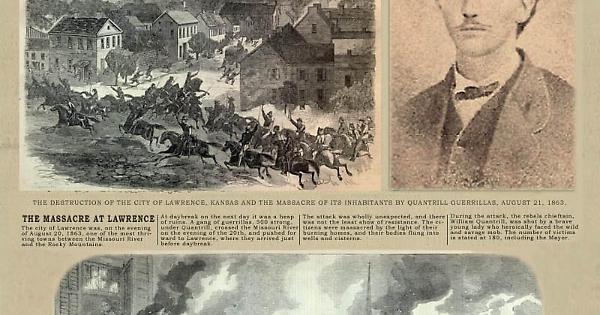 L’evento più significativo nella carriera da guerrigliero di William Clarke Quantrill (31 luglio 1837 – 21 agosto 1863) avvenne nel giorno esatto della sua morte. Lawrence era da anni il bastione delle forze antischiaviste del Kansas e anche la base operative per le incursioni in Missouri da parte dei jayhawker e delle forze favorevoli all’Unione. Era inoltre la casa del senatore James H.Lane, malfamato in Missouri per la sua ferma posizione contro la schiavitù e per essere un leader degli jayhawker, a capo dei quali, nel settembre del 1861, aveva saccheggiato e bruciato la città di Osceola. Questi razziatori avevano saccheggiato il Missouri per anni prima dello scoppio della guerra e Lawrence, il centro delle operazioni, era considerata il magazzino dove erano accumulati tutti i beni sottratti in quegli anni.