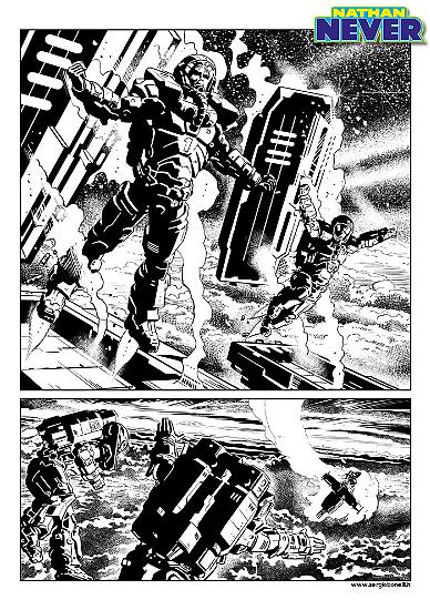 La trilogia che scuoterà dalle fondamenta la serie e che rappresenterà l'epilogo di una lunga saga, quella di Omega, sviluppatasi negli ultimi anni in maniera quasi sotterranea, sarà scritta da Antonio Serra e visualizzata da un Sergio Giardo in gran spolvero. A dimostrare la qualità e la spettacolarità del lavoro del disegnatore torinese, eccovi alcune tavole in anteprima, estrapolate dai tre albi.