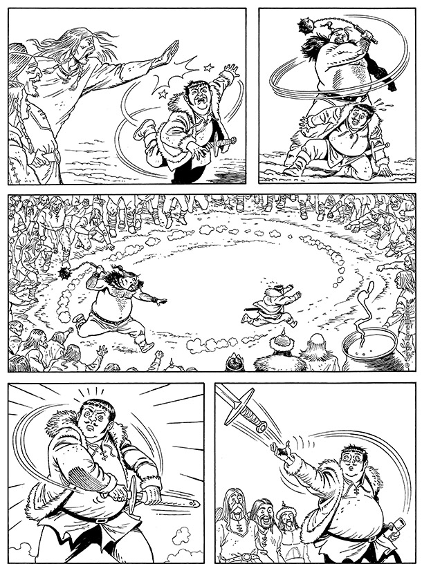 Moreno: Nel terzo episodio ci troviamo nel Medioevo, e il disegnatore è Stefano Voltolini, che per la Bonelli aveva fatto solo una storia breve di Dylan Dog. Viene dal "Giornalino", dove per tanti anni ha scritto lui stesso e disegnato una serie intitolata "Leo e Aliseo", che aveva un'ambientazione medievale. Si è presentato con delle prove di Zagor, ed è capitato a fagiolo!