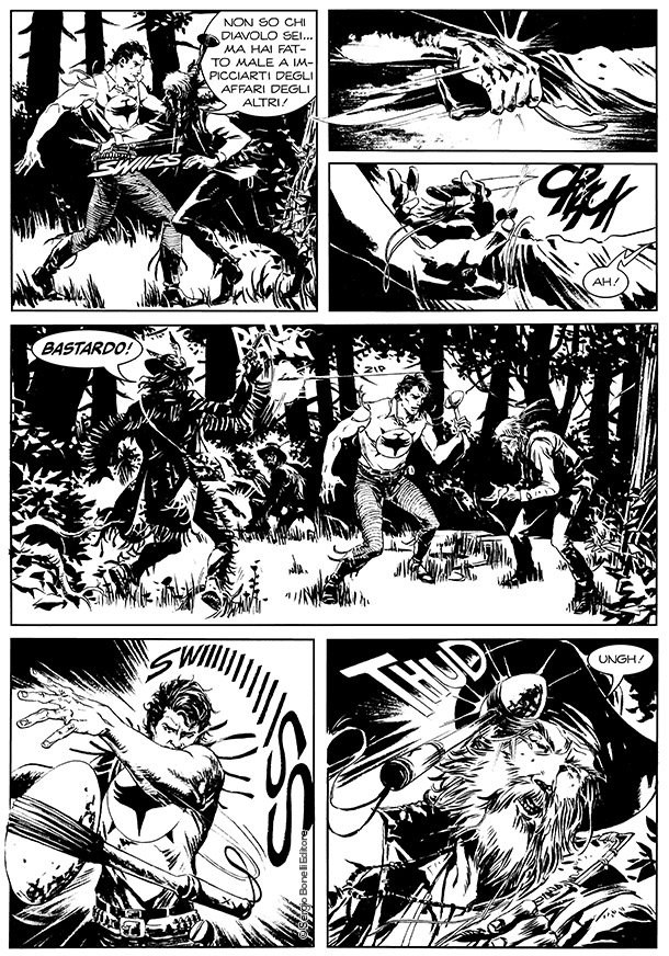 A Lola ci tenevo, dopo aver realizzato con lei la sexy indianina Occhi di Cielo, le cui tavole apparvero anni fa su Dime Press, e dopo averla vista disegnare efficacissime pin-up zagoriane nel corso di mostre e manifestazioni (cosa che l'ha resa una vera beniamina dei frequentatori di forum e gruppi internettiani dedicati all'eroe di Darkwood). A Romeo sono arrivato cercando un illustratore adatto per il racconto di Toninelli, e ho scoperto che aveva un'antica passione per lo Spirito con la Scure. Gli altri si sono presentati spontaneamente, perché cultori del personaggio fin da giovanissimi e con il sogno di realizzarne almeno un'avventura. Sono tanti, quelli che si propongono, sull'onda del medesimo entusiasmo e per lo stesso motivo. Ne ho selezionati una quindicina: alcuni dei loro lavori sono in "I racconti di Darkwood"; altri, già realizzati o in fase di realizzazione, li pubblicheremo su altri Maxi Zagor simili a questo, anche se distribuiti in un certo arco di tempo. Poi, se i lettori apprezzeranno, l'esperimento potrebbe diventare una consuetudine.