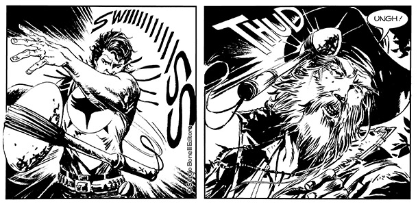 ![]() Una striscia di Lola Airaghi da "Brezza di Luna", Maxi Zagor n.31. Testi di Moreno Burattini. |