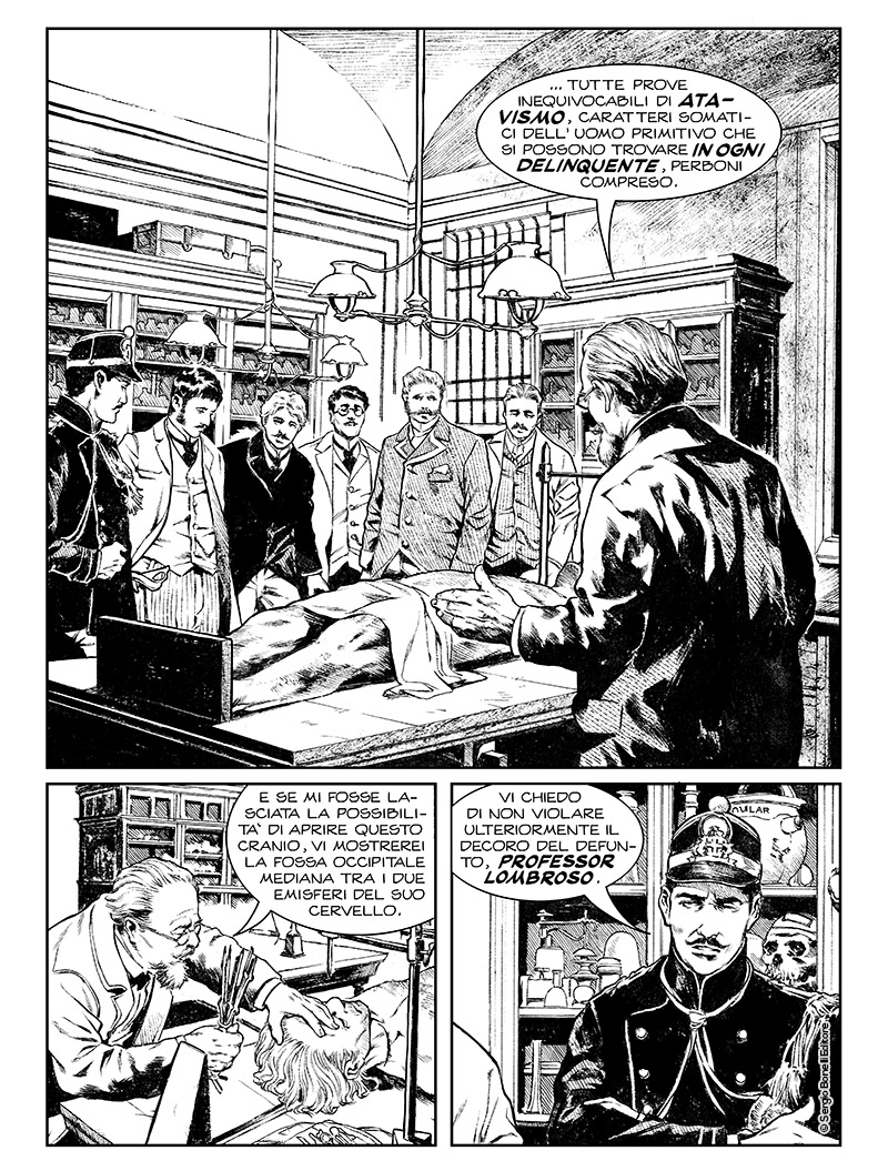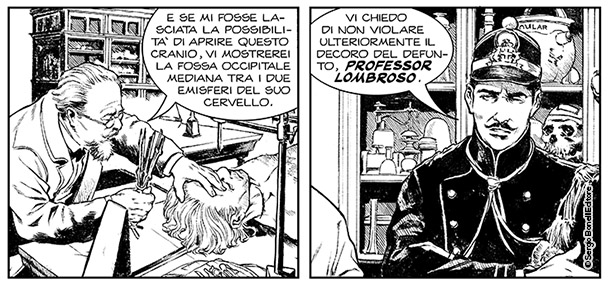 Poi, giusto per fugare ogni dubbio, l'albo non è un pamphlet sulle più note teorie lombrosiane, oggettivamente destituite di fondamento, e nemmeno una biografia dello studioso: il Lombroso che si muove nella nostra vicenda è una reinvenzione letteraria, un "what if" in cui storia e letteratura si incontrano e si reinventano a vicenda.