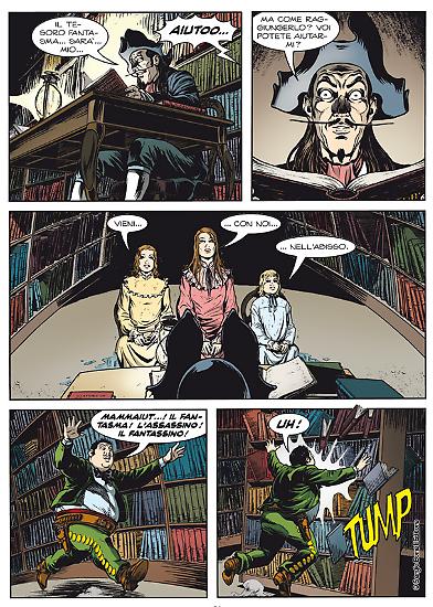 Vi ho astutamente ingannato! In realtà, come atmosfere la mia principale fonte di ispirazione è un altro classico zagoriano, vale a dire "La Casa del Terrore", splendido esempio dell'horror zagoriano che citavo all'inizio, e il cui mix fra comicità e spavento credo ripercorra a sua volta le orme di alcune vecchie storie di Topolino (che adoro), anch'esse fonte di ispirazione di "Spettri per "Digging" Bill". Parlo di storie come "La Casa dei Fantasmi" o "La Valle Infernale" di Gottfredson, o "L'Unghia di Kalì" di Romano Scarpa. Ecco, quella è l'atmosfera che cercavo.