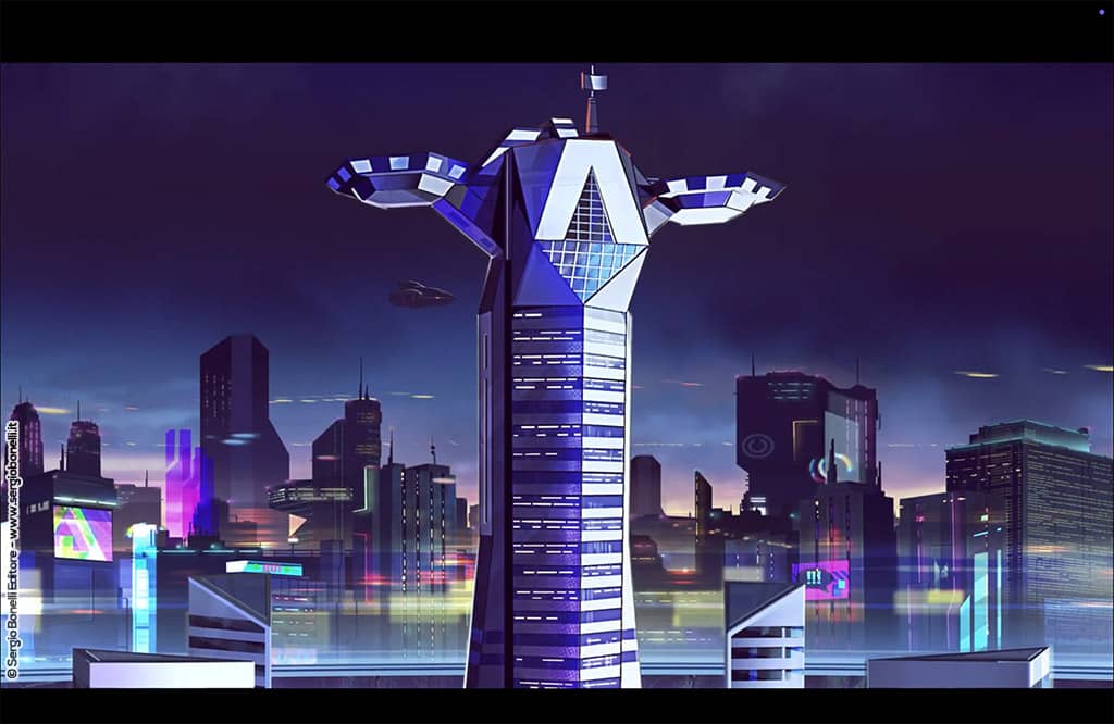 The series consists of four episodes directed by Federico Rossi Edrighi and Raffaele Compagnoni, with executive producer Vincenzo Sarno and production director Antonio Navarra. The environments were completely recreated from scratch, starting from the original materials of the Nathan Never comic series, created by Michele Medda, Antonio Serra and Bepi Vigna. The design work was entrusted among others to Luca Genovese and Fabiana Fiengo, who collaborated to adapt the characters to animation without betraying their spirit. As explained by Giovanni Masi and Mauro Uzzeo, the project’s creative producers, the work of translating from comic to animated series was not simple, because Legs in comics had an enormous pool to draw from, but the problem is that to bring them to animation, a completely different language, the right adaptation had to be found. Additionally, Legs’ narrative genre imposes precise rules that the team had to respect while maintaining the visual essence of the comic, a delicate balance achieved through months of trials and adjustments.