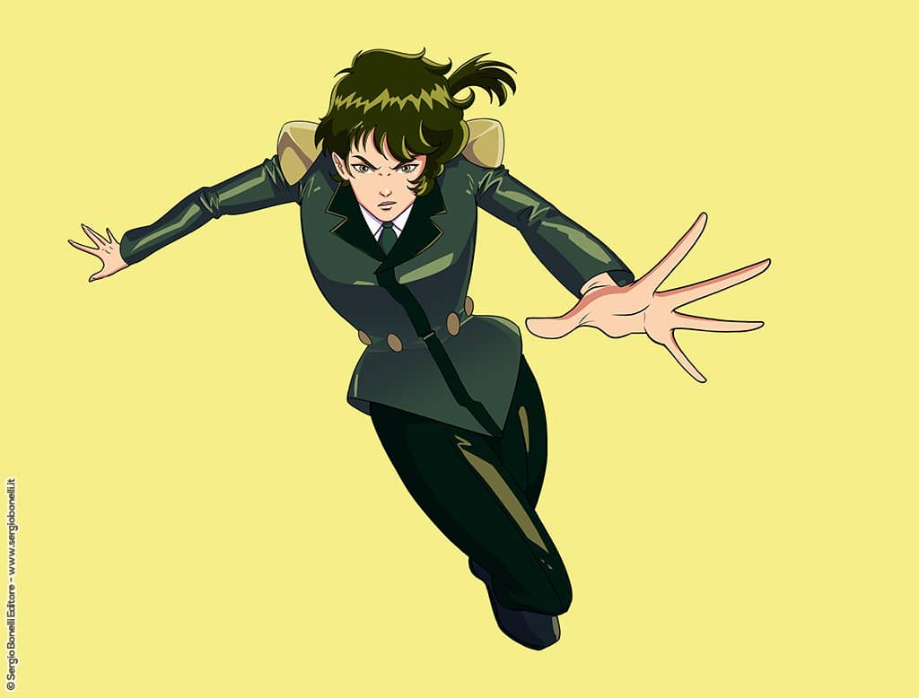 «We needed to find a character that had in its DNA the ability to be exciting,» explained Vincenzo Sarno. «We needed a character that could look at the canon of 1980s Japanese animation with irony, that would evolve the concept of breaking the fourth wall expressed by John Byrne in the “She-Hulk” series.» The answer was Rebecca Lawrence Weaver, known as Legs, a heroine born in 1991 in the pages of Nathan Never, a character created by Medda, Serra & Vigna, who became the protagonist of her own series starting in 1995. «We asked ourselves: but who in Bonelli embodies all this?» Sarno recounted at Lucca. «The answer was a character who was Nathan’s sidekick in the early years and then became an absolute protagonist. She embodies the poetics of Nathan Never’s three creators, but also the grammar of one of the three. And that’s Antonio Serra.» Serra, described by Sarno as «a man of incredible intelligence who knew how to mix different canons, different grammars to give the Italian audience a character who was so ahead of her time that she was already in the future.»