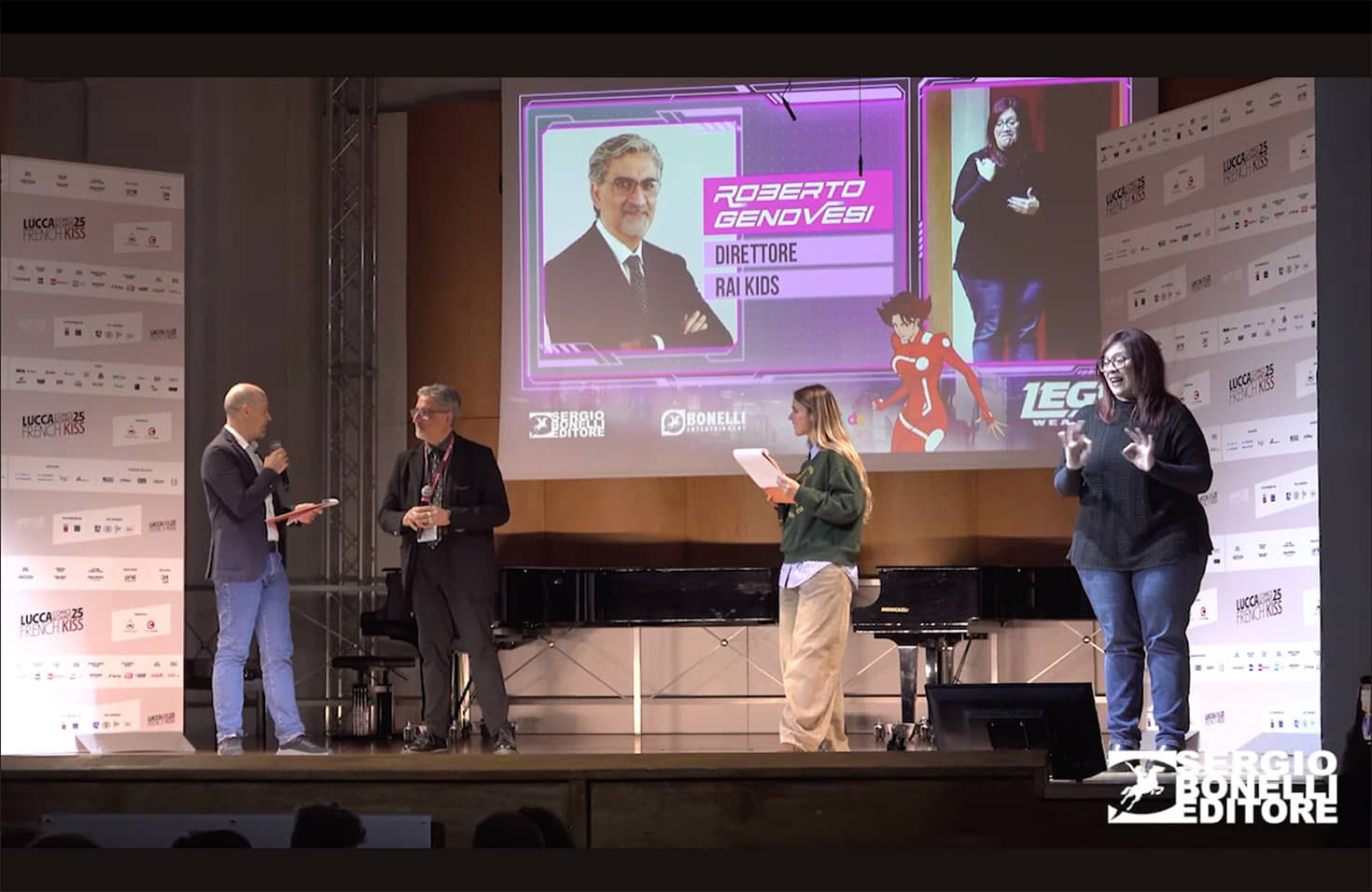 To realize this ambitious project, Bonelli Entertainment turned to Tiwi, which had already collaborated with the publishing house on The Editor is in series. As recounted by Federico Rossi Edrighi, another author beloved by the Italian audience who wanted to be present on the Auditorium stage and one of the series’ two directors, «I don’t know if perhaps it was the most difficult thing, but certainly one of the most important was the transition, without betraying the character, from one medium to another.» The main challenge was maintaining Legs’ essence – her irony, her freshness, her dynamism – while adapting it to the language of animation. Raffaele Compagnoni, co-director and representative of Tiwi, added: «It’s an extremely fun process to review every scene 1500 times to optimize it, to ensure that the pace doesn’t drop, but also that the limits we set ourselves in terms of animation were respected.»