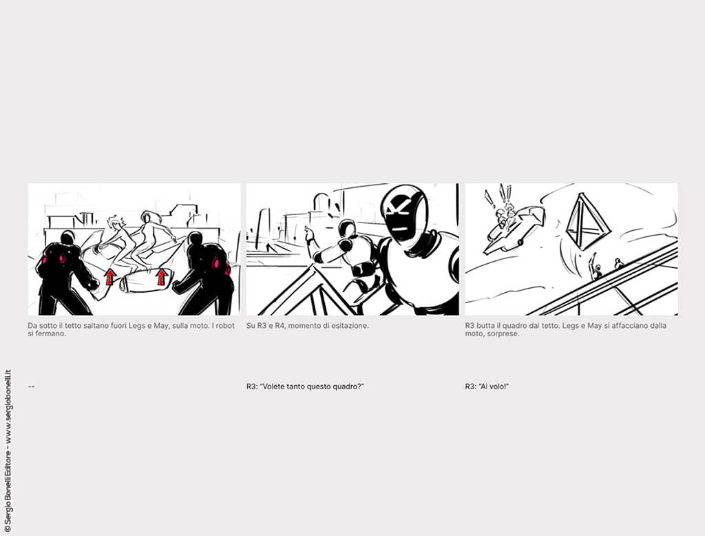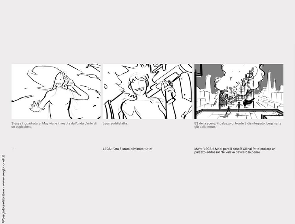The series’ screenplay was entrusted to Adriano Barone, well known in the USA for his team-up with DC Comics, who worked on a story by Antonio Serra, one of the character’s three original creators. The story adapts a classic cycle from the Legs comic series, that of the Black Ladies, maintaining the comedy tone that has always characterized the special agent’s adventures. As Barone himself recounted at Lucca in front of the most important representatives of the sector gathered in the prestigious meeting location: «When Legs had her own title there was an addition of world building compared to what was Nathan Never’s world with a take that was decidedly comedy.»