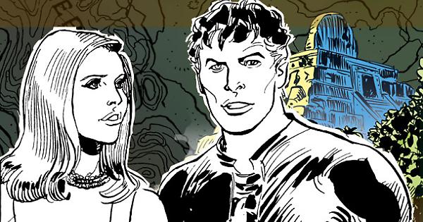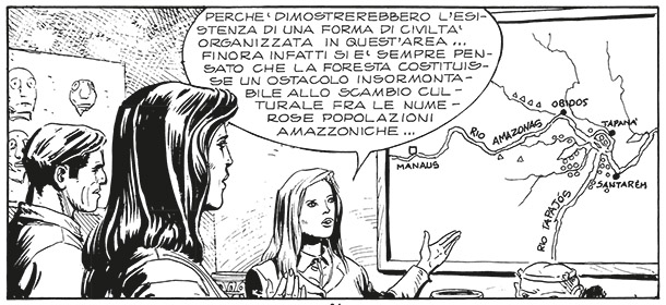 ![]() Mister No, Patricia Rowlands e il professor Warren scoprono una piramide Maya in piena foresta amazzonica. Disegno di Roberto Diso |