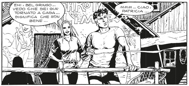 ![]() Patricia e Mister No in convalescenza dopo l'ennesima scazzottata, disegno di Giovanni Bruzzo |