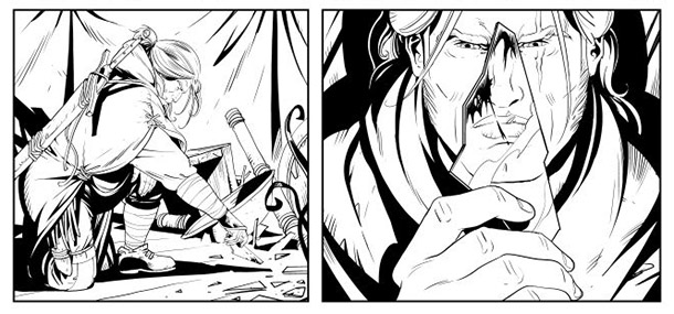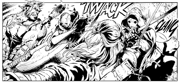 ![]() Studio per la "Saga delle Regine Nere" di Giancarlo Olivares (cliccate sull'immagine per visualizzare la tavola intera). |